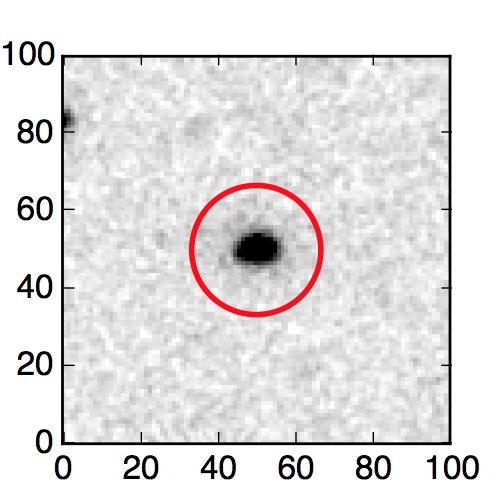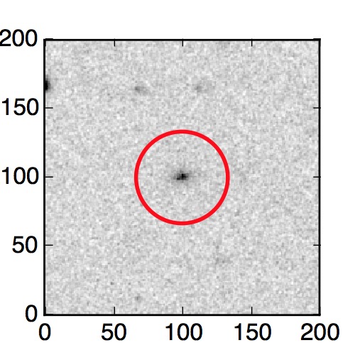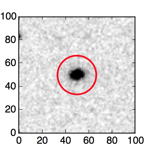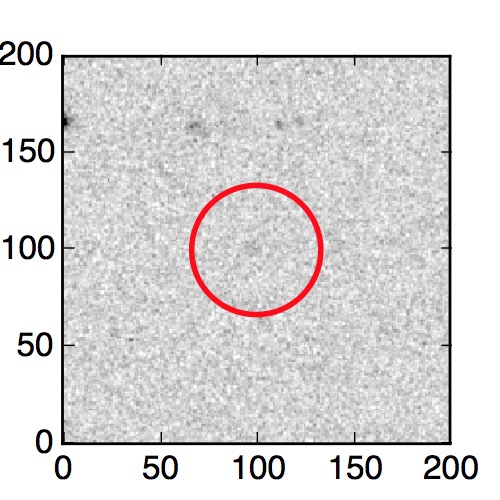 The red circle in the various panels is 1" in radius. The images are 6"x6".