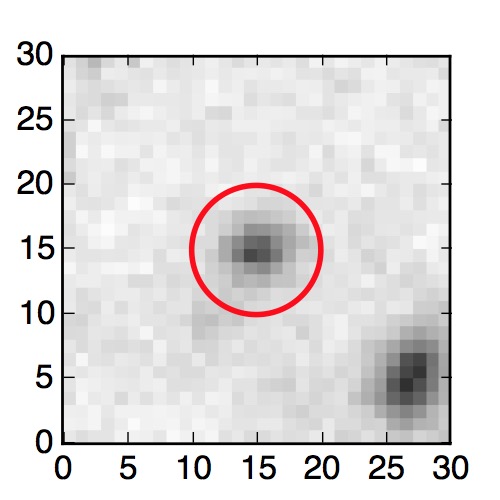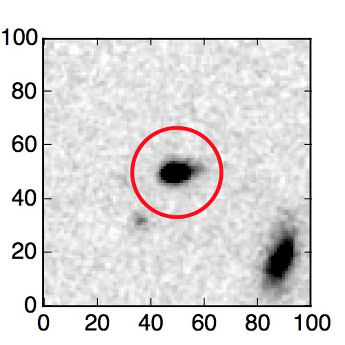 The red circle in the various panels is 1" in radius. The images are 6"x6".