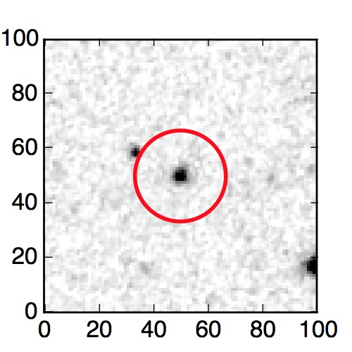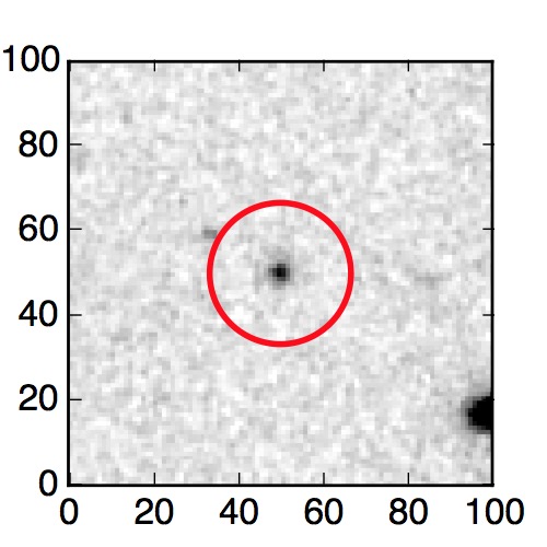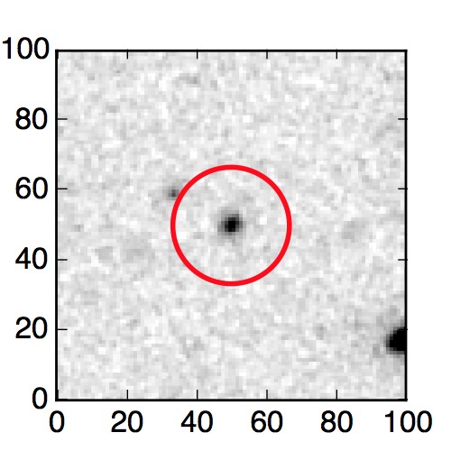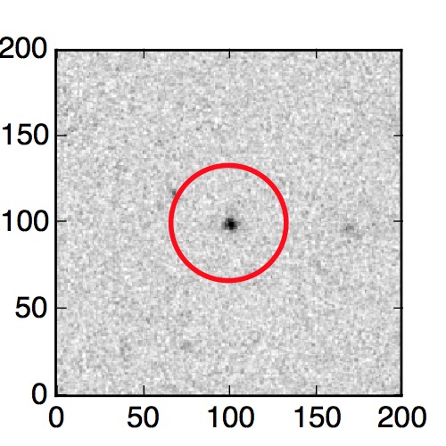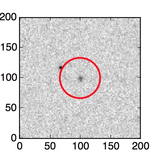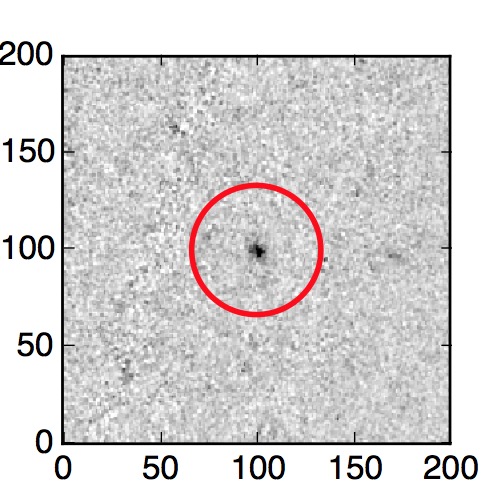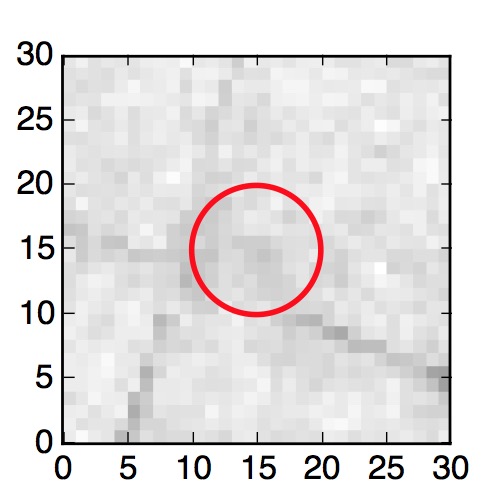 The red circle in the various panels is 1" in radius. The images are 6"x6".