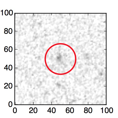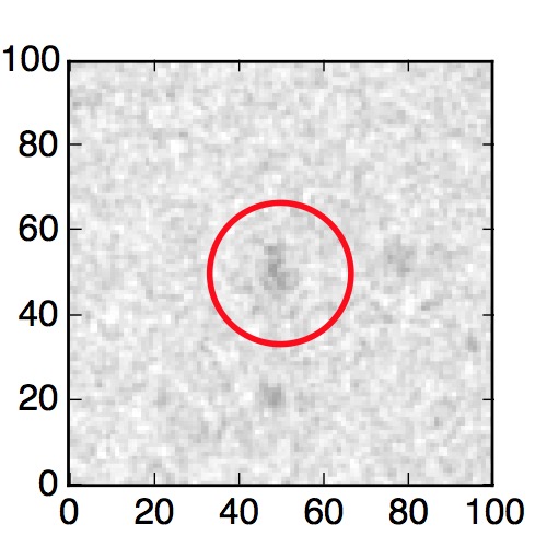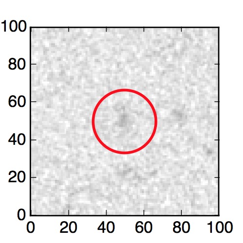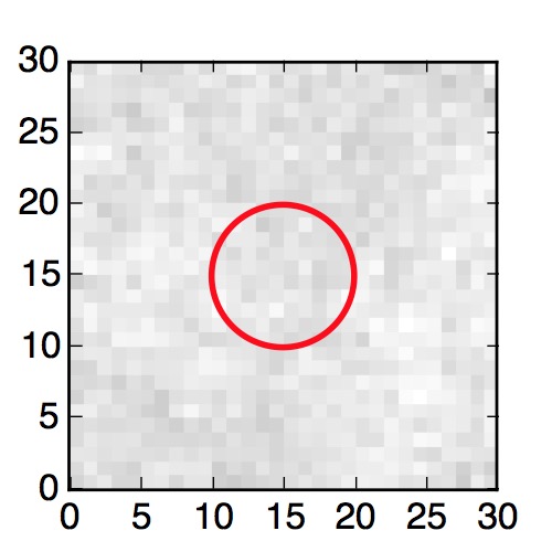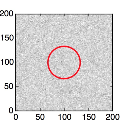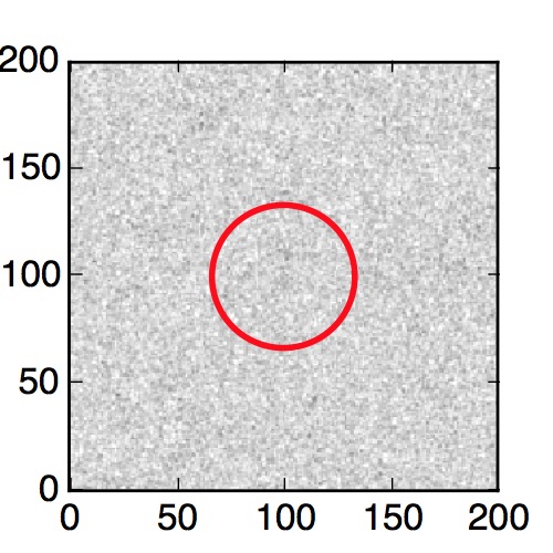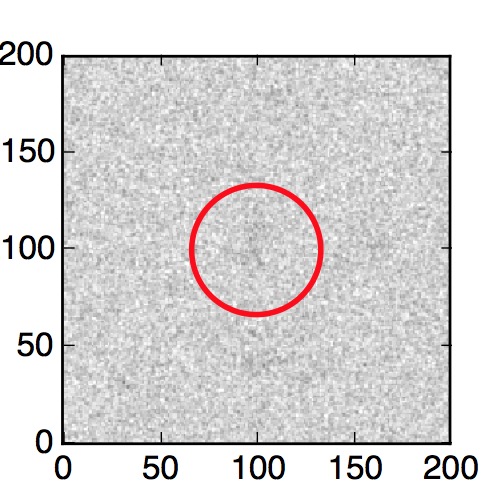 The red circle in the various panels is 1" in radius. The images are 6"x6".