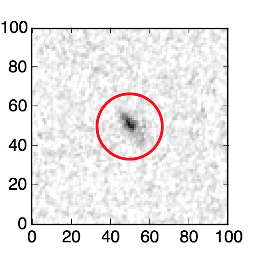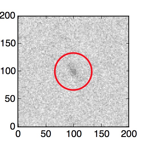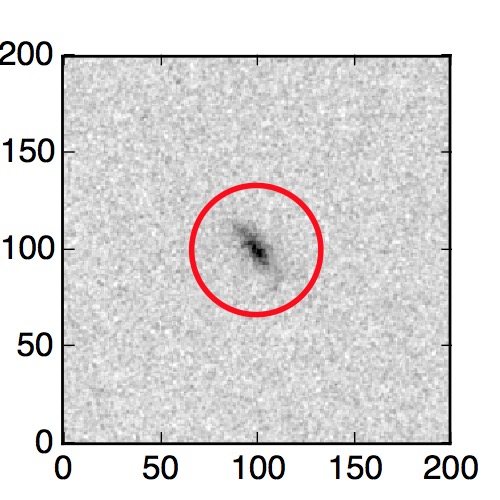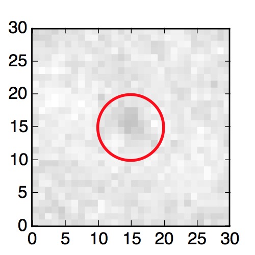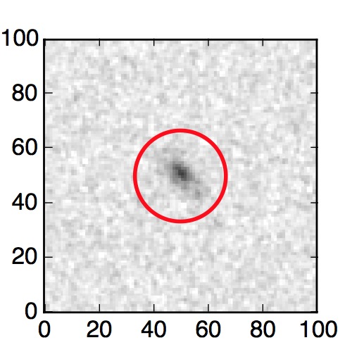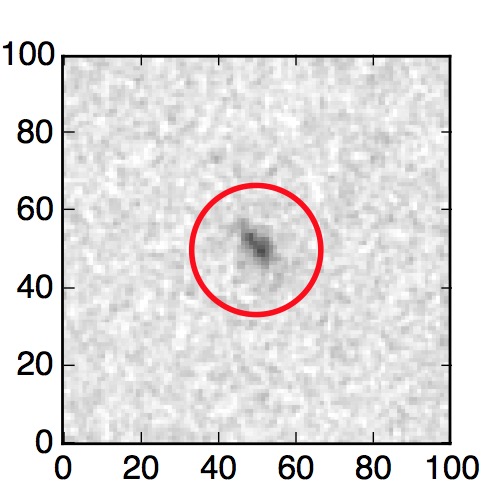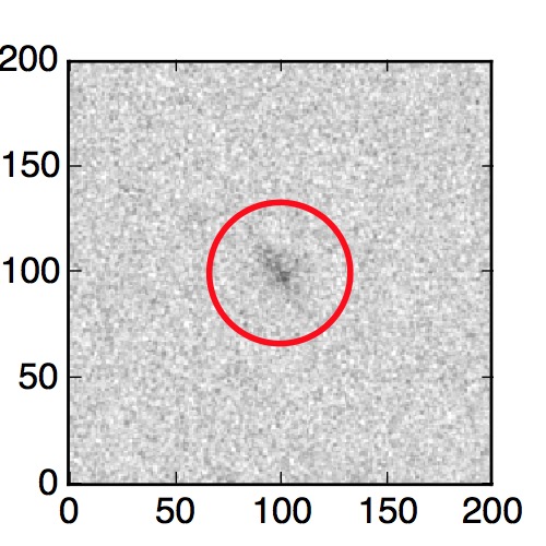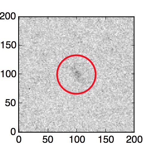 The red circle in the various panels is 1" in radius. The images are 6"x6".