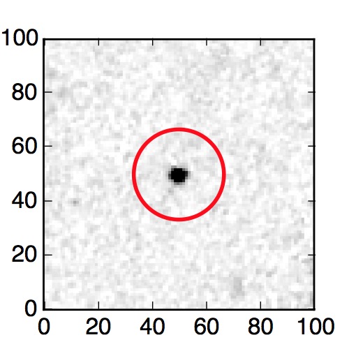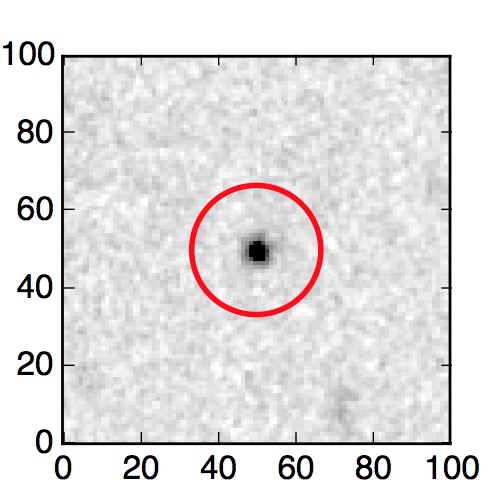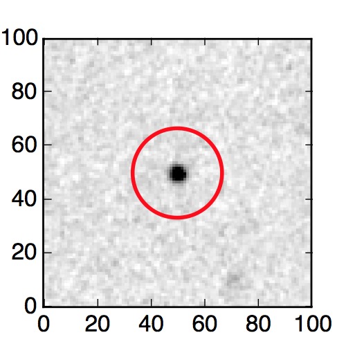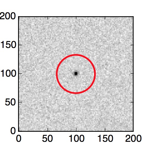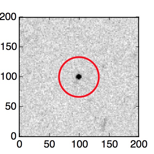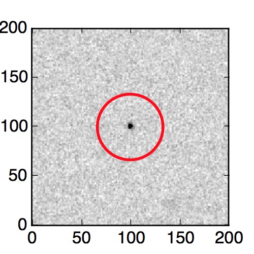 The red circle in the various panels is 1" in radius. The images are 6"x6".