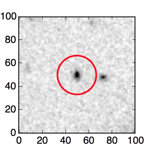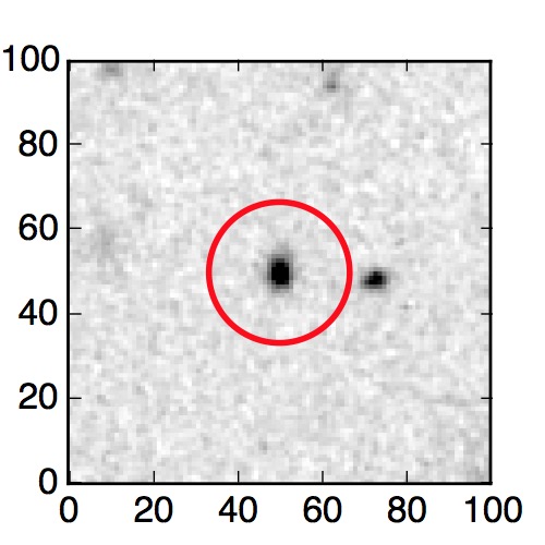 The red circle in the various panels is 1" in radius. The images are 6"x6".