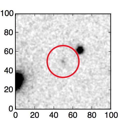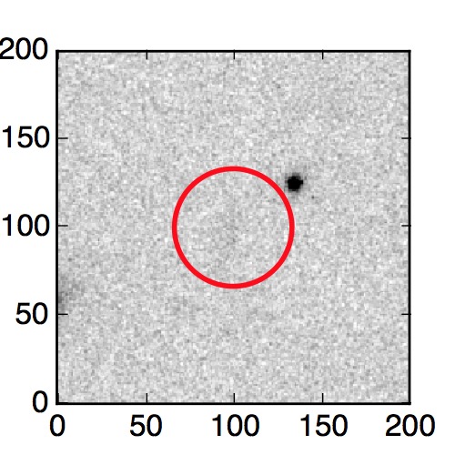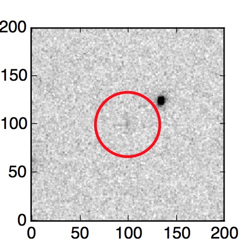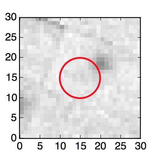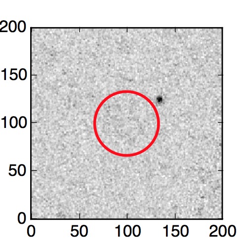 The red circle in the various panels is 1" in radius. The images are 6"x6".