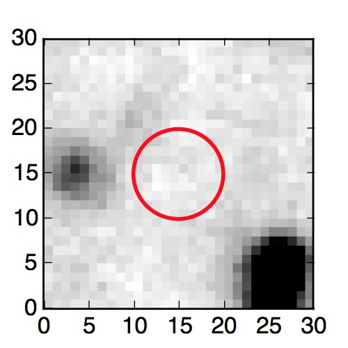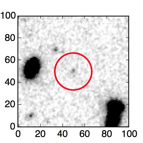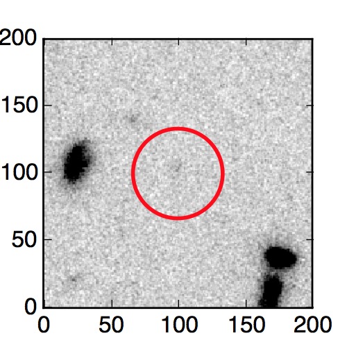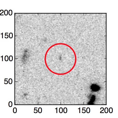 The red circle in the various panels is 1" in radius. The images are 6"x6".