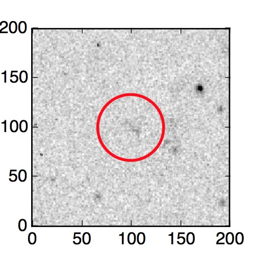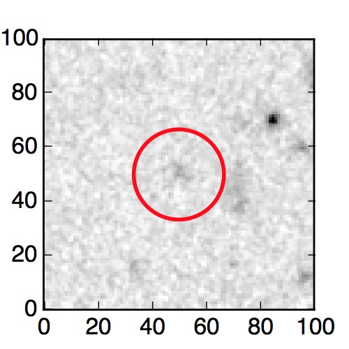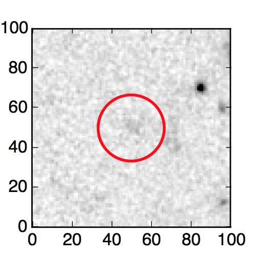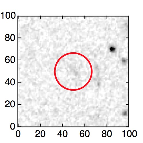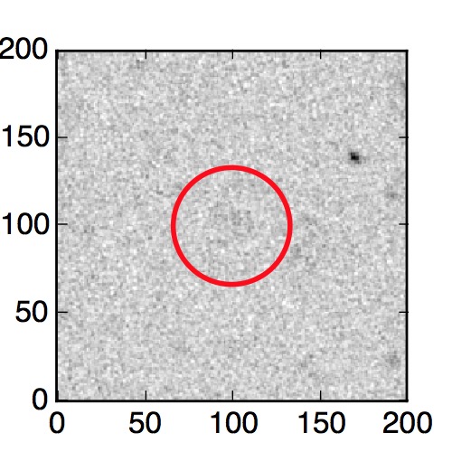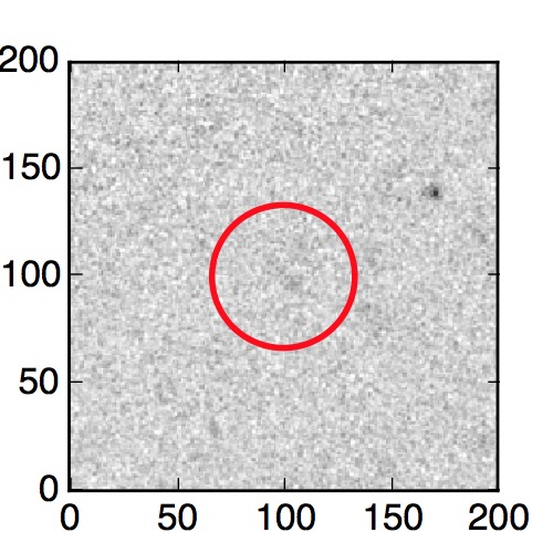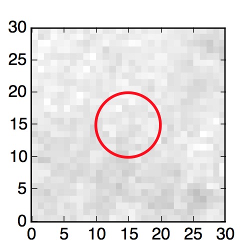 The red circle in the various panels is 1" in radius. The images are 6"x6".