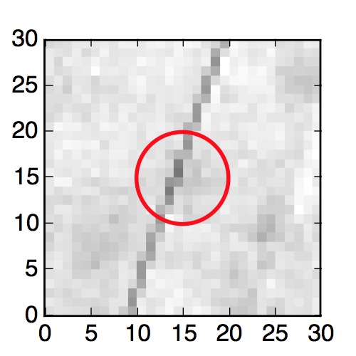The red circle in the various panels is 1" in radius. The images are 6"x6".