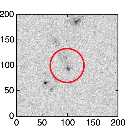 The red circle in the various panels is 1" in radius. The images are 6"x6".