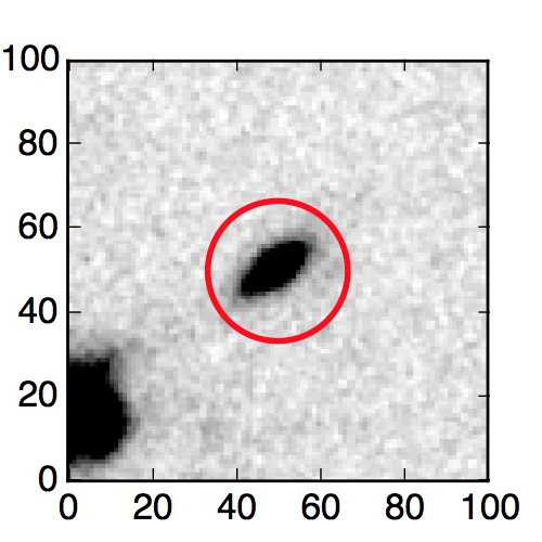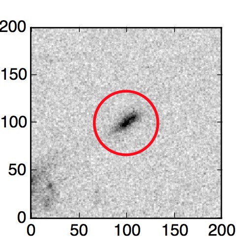 The red circle in the various panels is 1" in radius. The images are 6"x6".