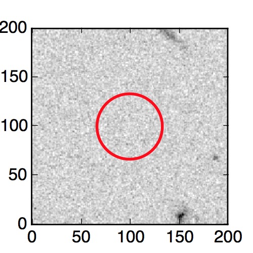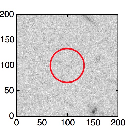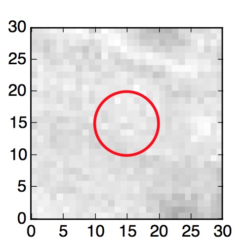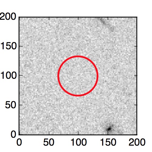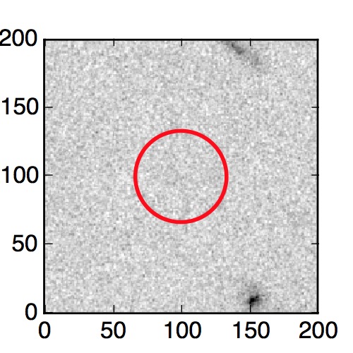 The red circle in the various panels is 1" in radius. The images are 6"x6".