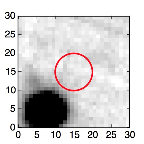 The red circle in the various panels is 1" in radius. The images are 6"x6".