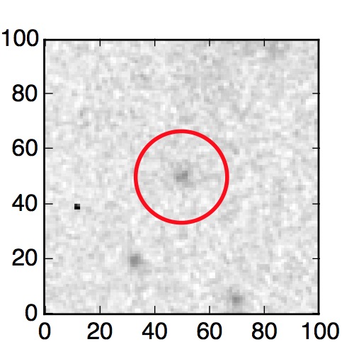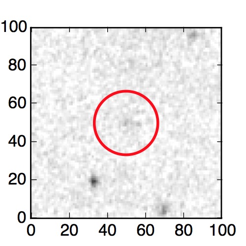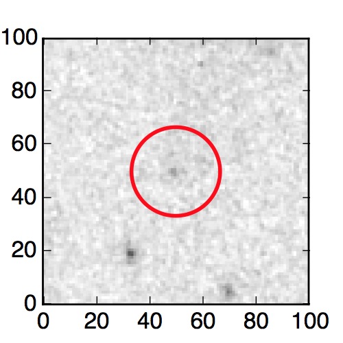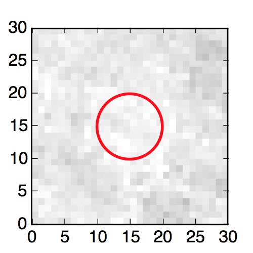The red circle in the various panels is 1" in radius. The images are 6"x6".