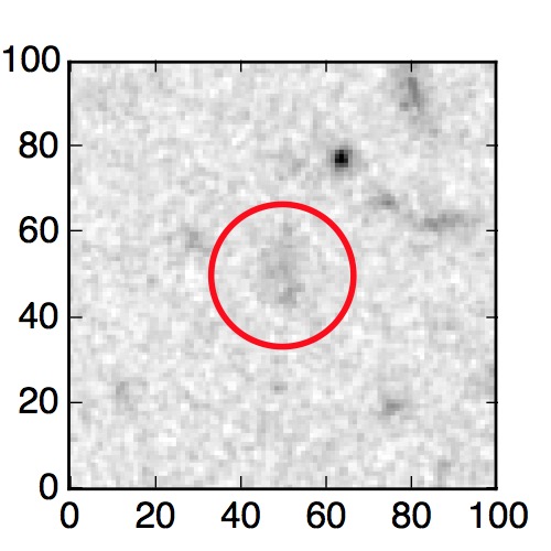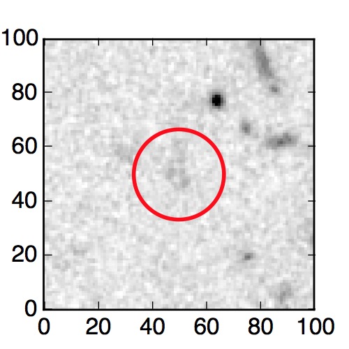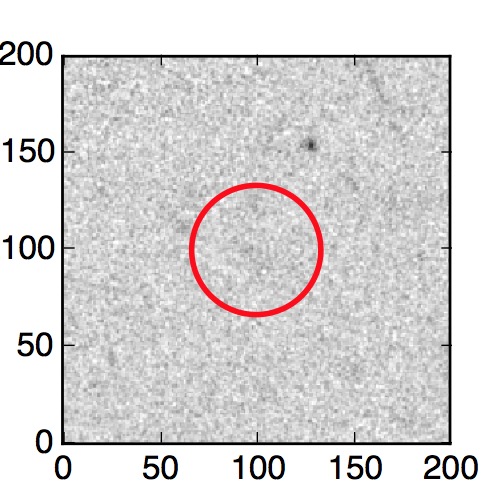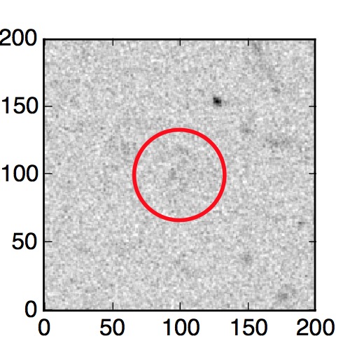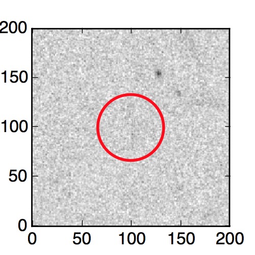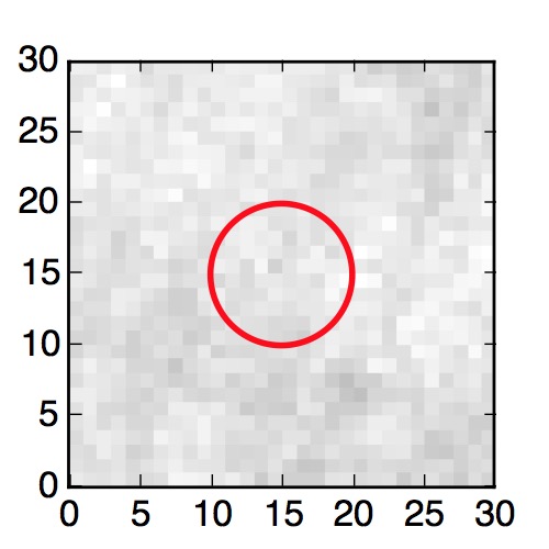 The red circle in the various panels is 1" in radius. The images are 6"x6".