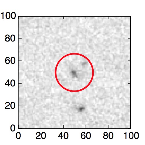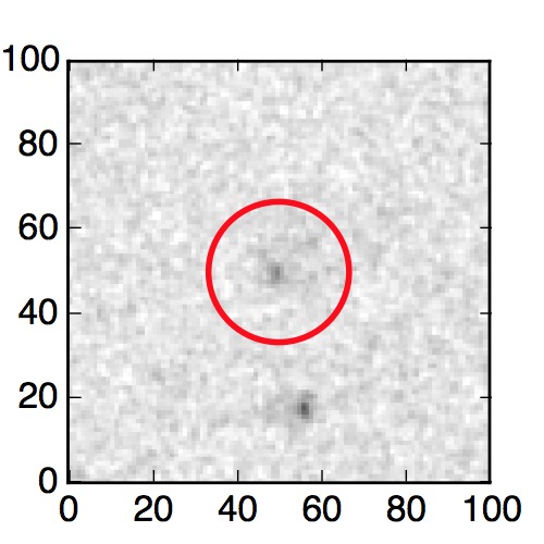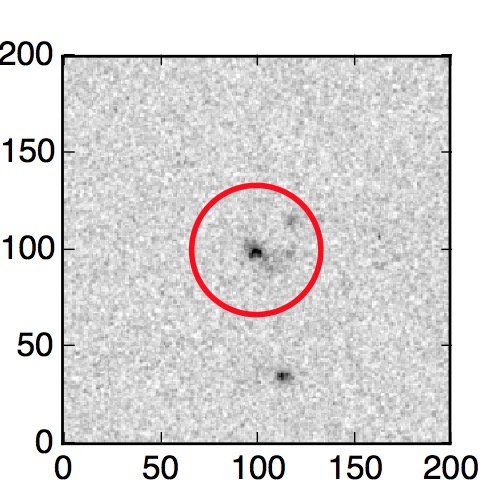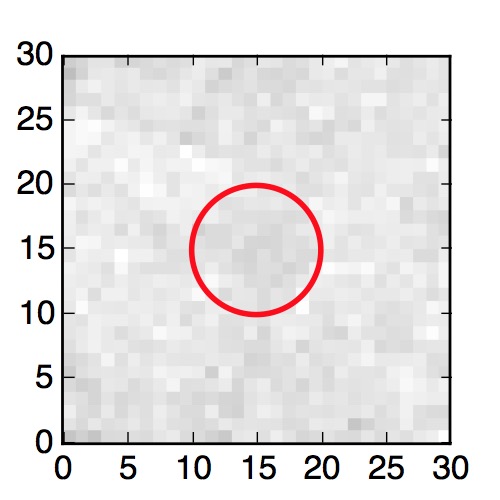 The red circle in the various panels is 1" in radius. The images are 6"x6".
