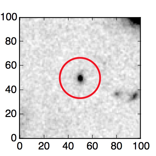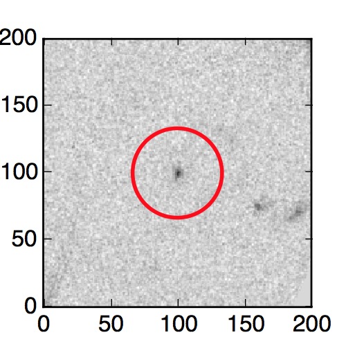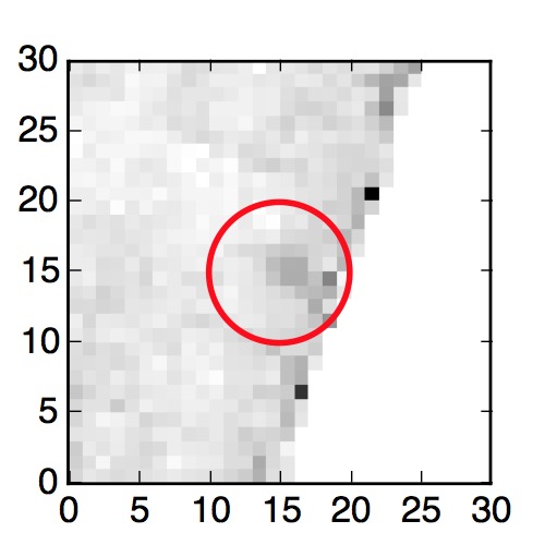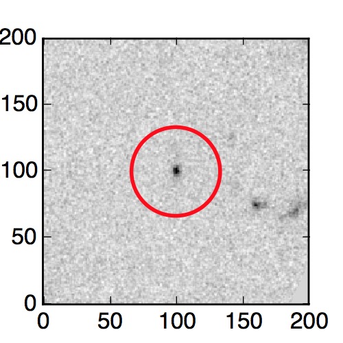 The red circle in the various panels is 1" in radius. The images are 6"x6".