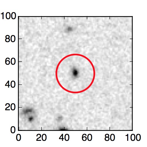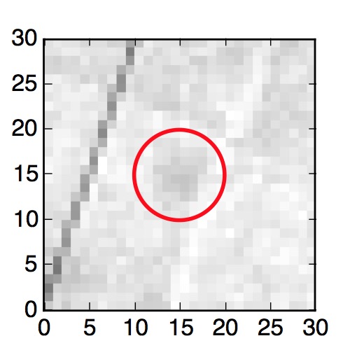 The red circle in the various panels is 1" in radius. The images are 6"x6".