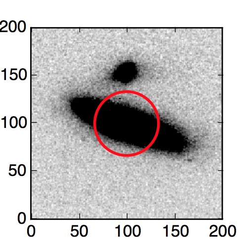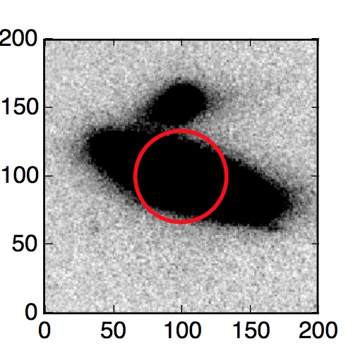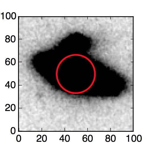 The red circle in the various panels is 1" in radius. The images are 6"x6".