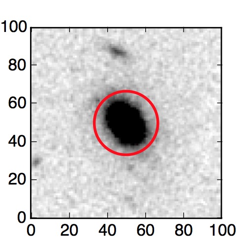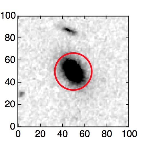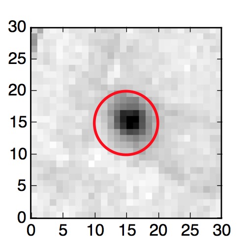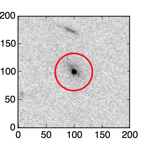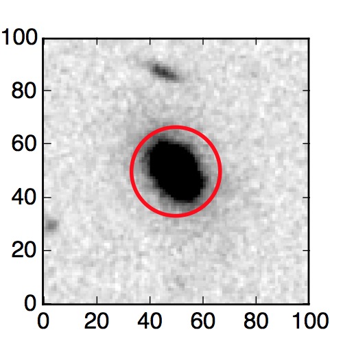 The red circle in the various panels is 1" in radius. The images are 6"x6".