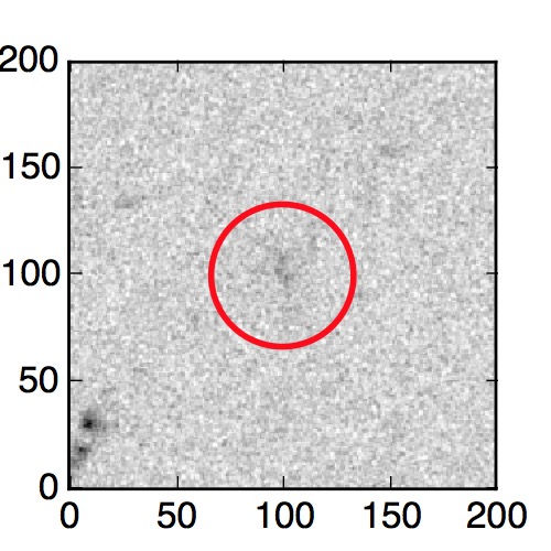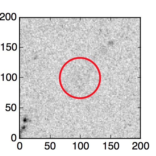 The red circle in the various panels is 1" in radius. The images are 6"x6".