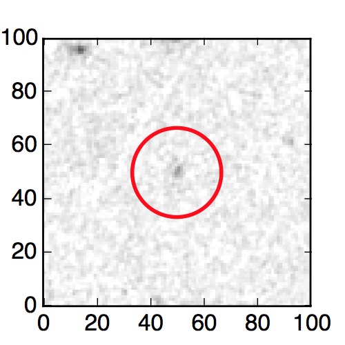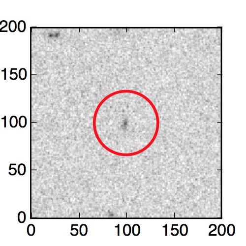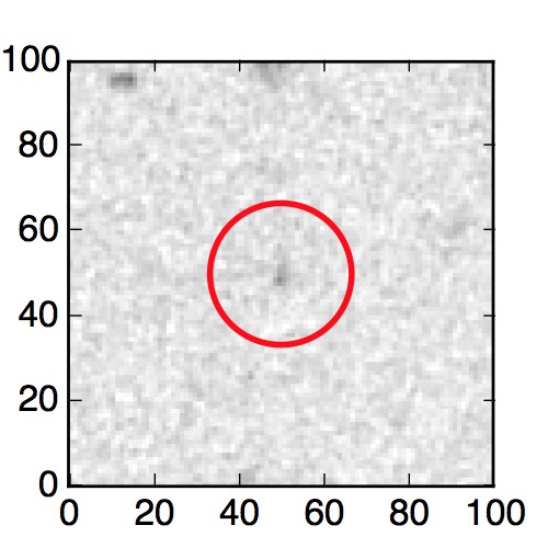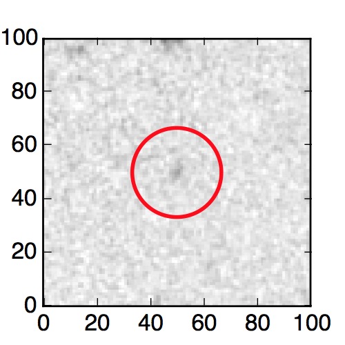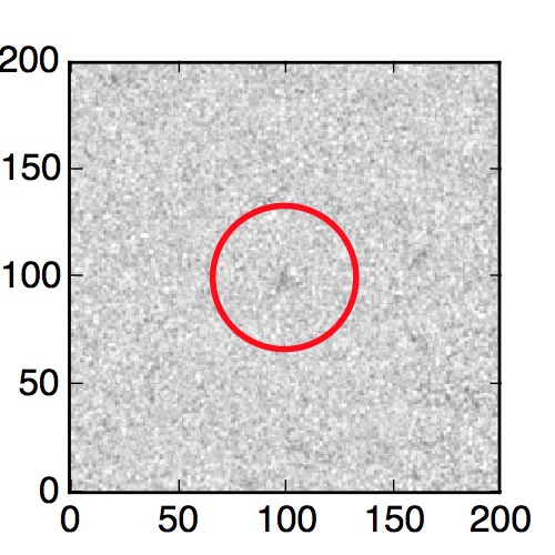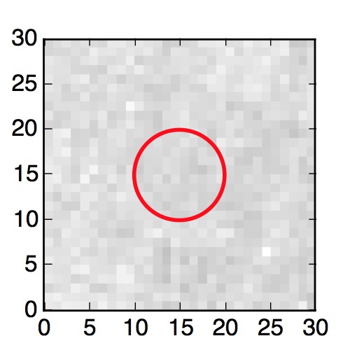 The red circle in the various panels is 1" in radius. The images are 6"x6".