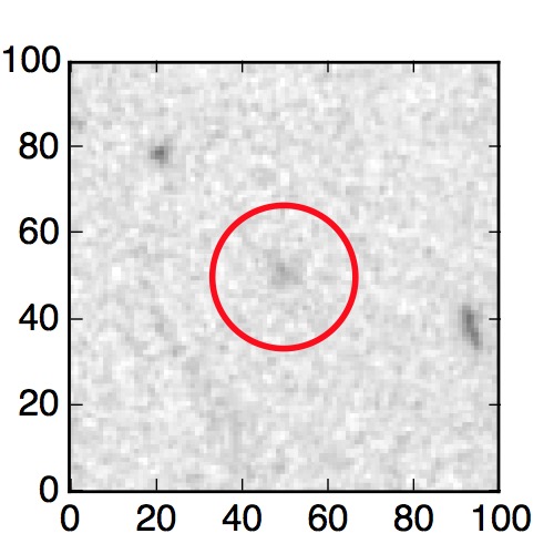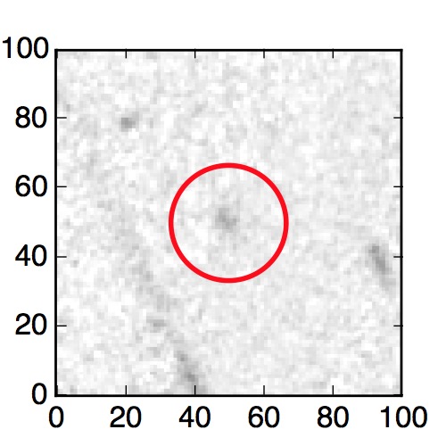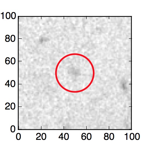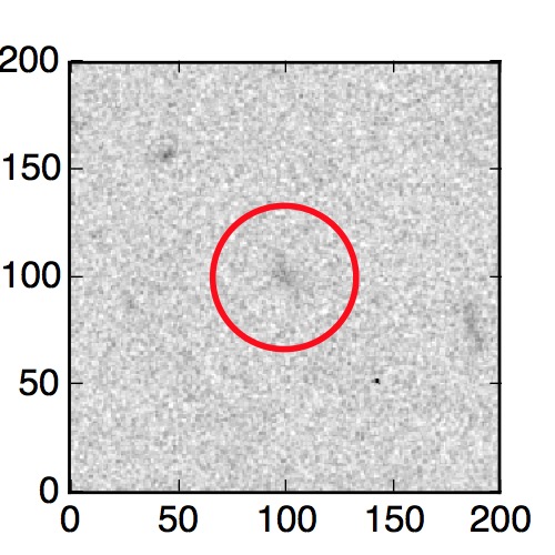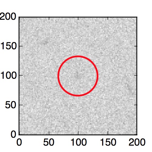 The red circle in the various panels is 1" in radius. The images are 6"x6".