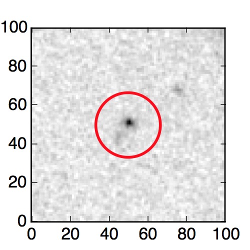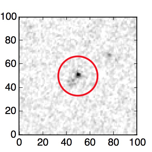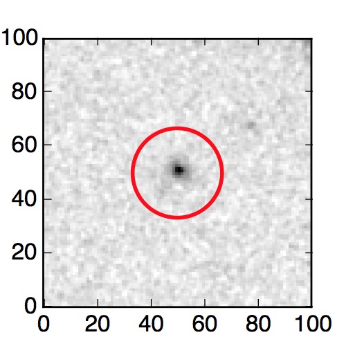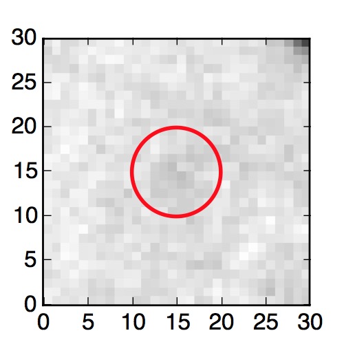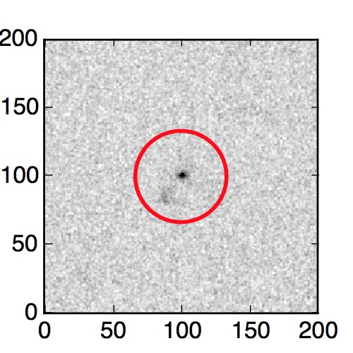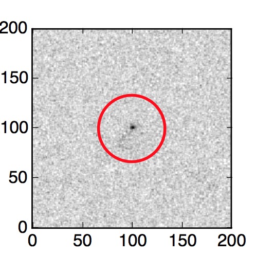 The red circle in the various panels is 1" in radius. The images are 6"x6".