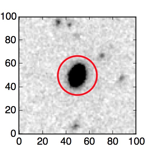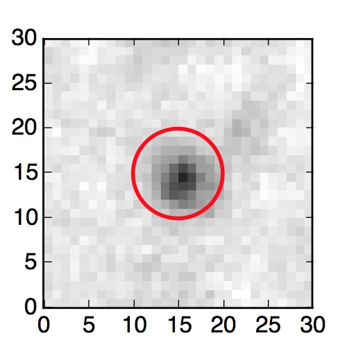 The red circle in the various panels is 1" in radius. The images are 6"x6".