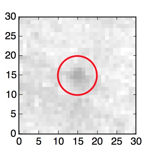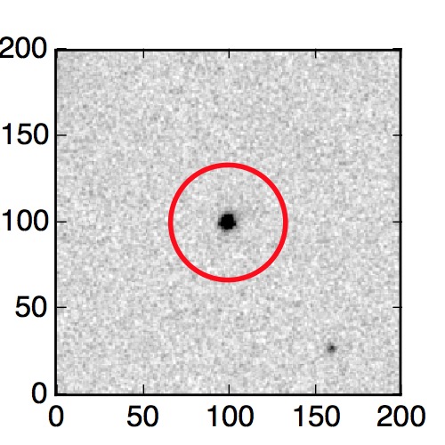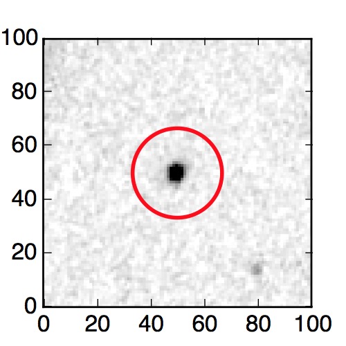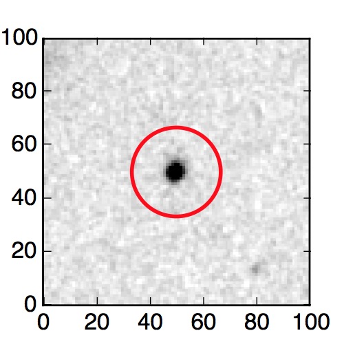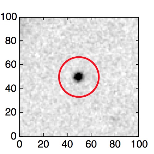 The red circle in the various panels is 1" in radius. The images are 6"x6".