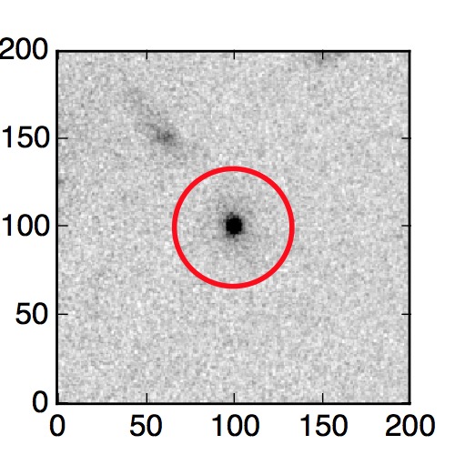The red circle in the various panels is 1" in radius. The images are 6"x6".
