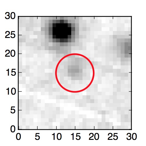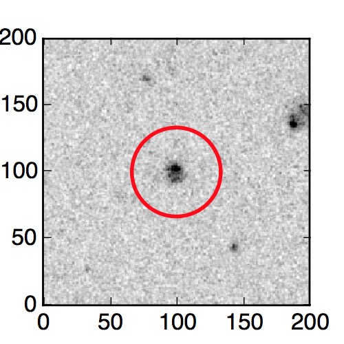 The red circle in the various panels is 1" in radius. The images are 6"x6".