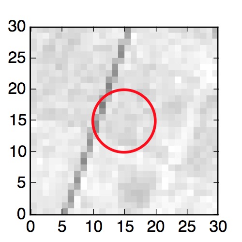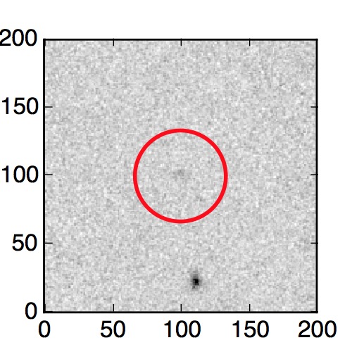 The red circle in the various panels is 1" in radius. The images are 6"x6".