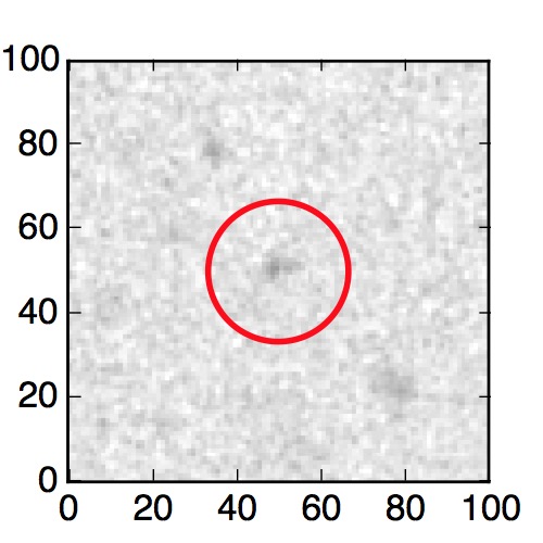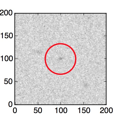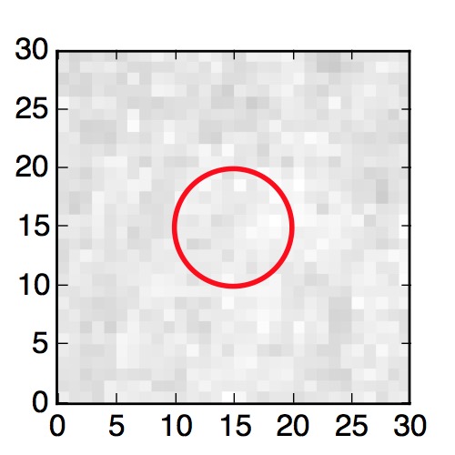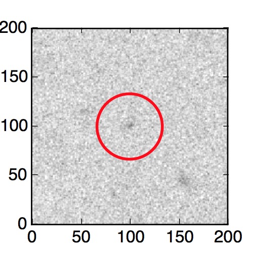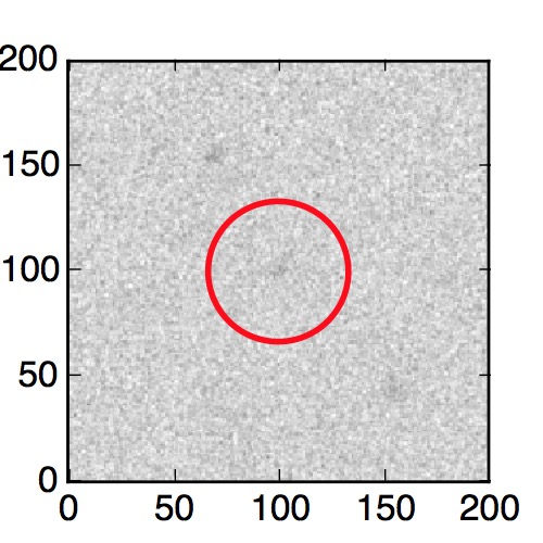 The red circle in the various panels is 1" in radius. The images are 6"x6".