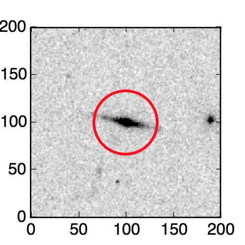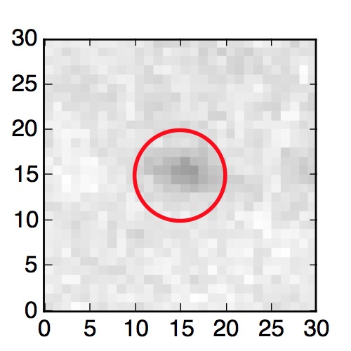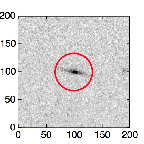 The red circle in the various panels is 1" in radius. The images are 6"x6".