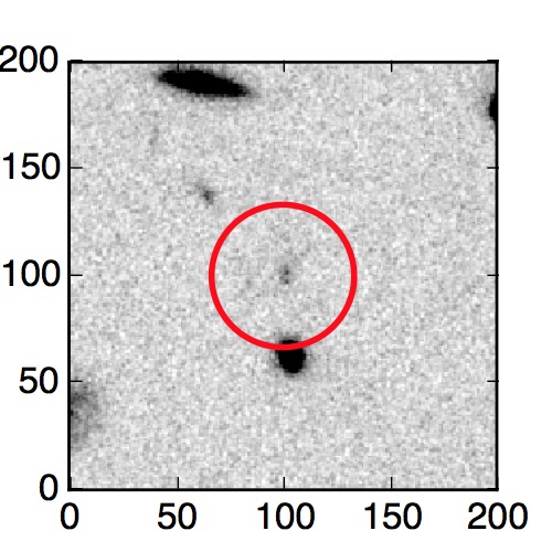 The red circle in the various panels is 1" in radius. The images are 6"x6".