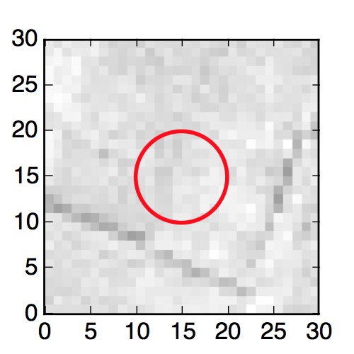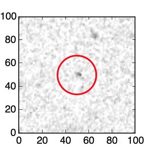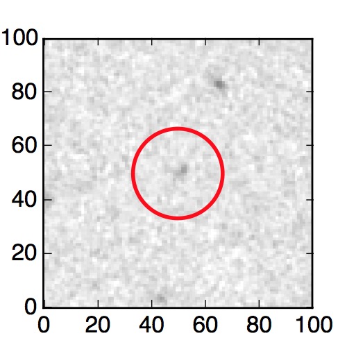 The red circle in the various panels is 1" in radius. The images are 6"x6".