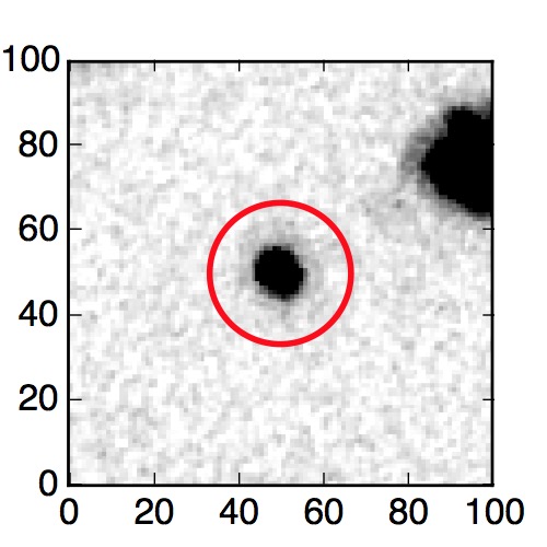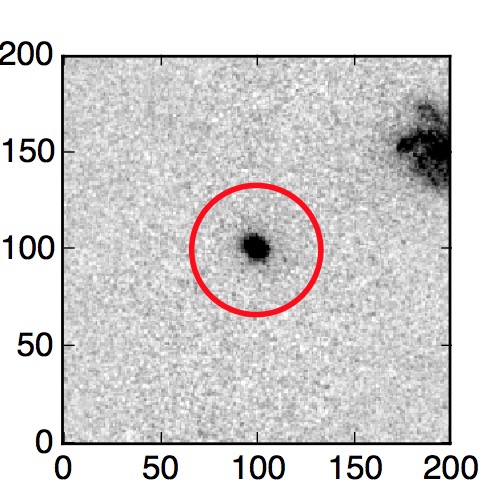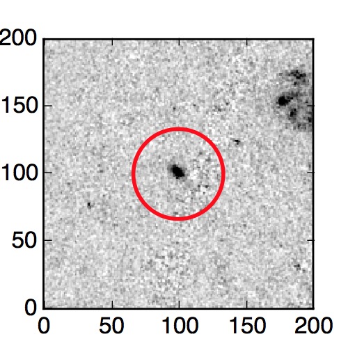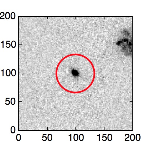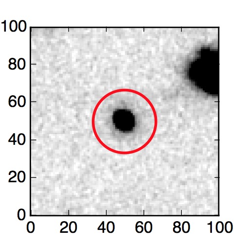 The red circle in the various panels is 1" in radius. The images are 6"x6".