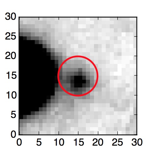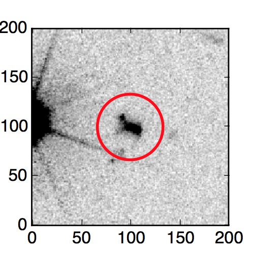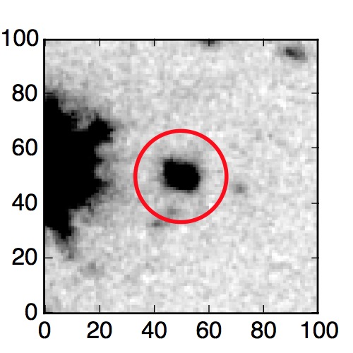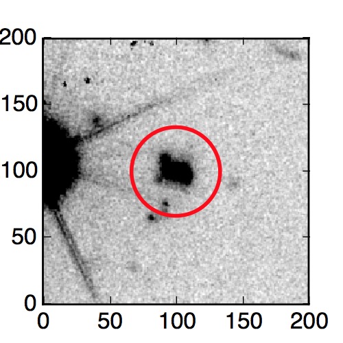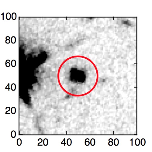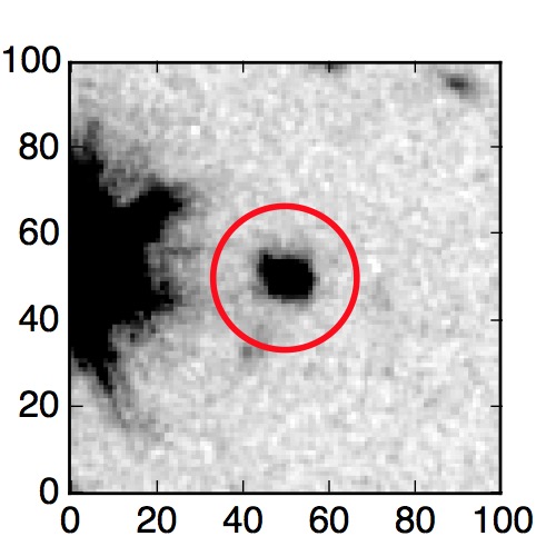 The red circle in the various panels is 1" in radius. The images are 6"x6".