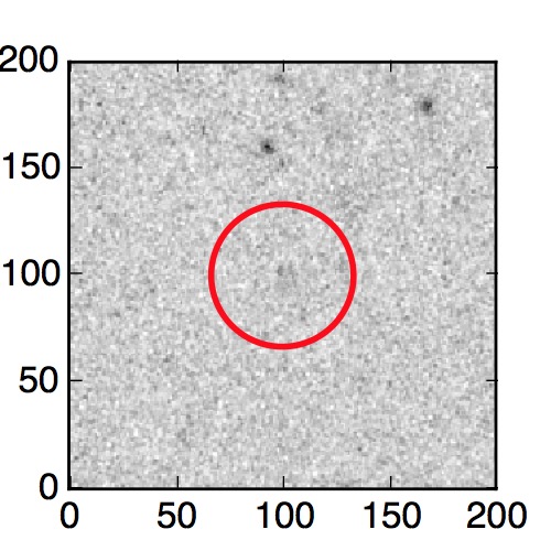 The red circle in the various panels is 1" in radius. The images are 6"x6".