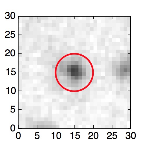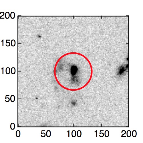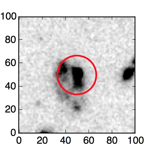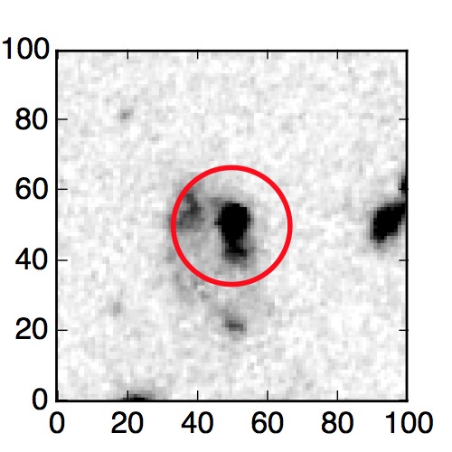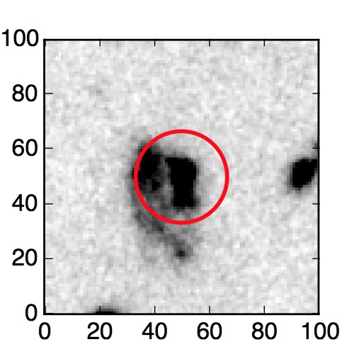 The red circle in the various panels is 1" in radius. The images are 6"x6".