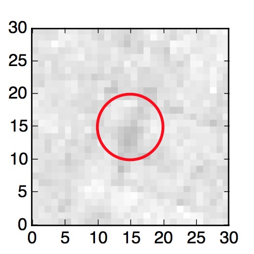 The red circle in the various panels is 1" in radius. The images are 6"x6".