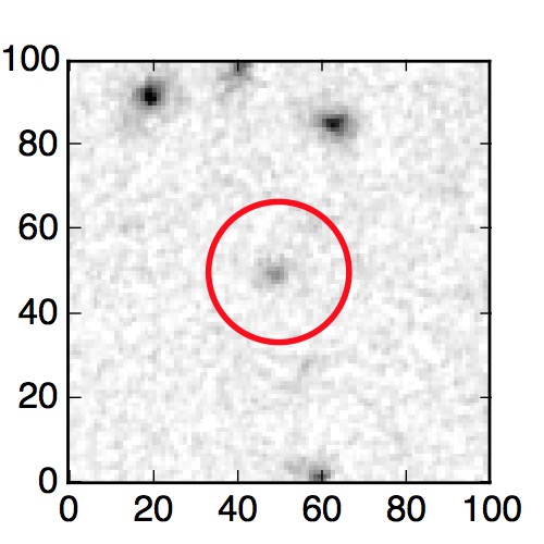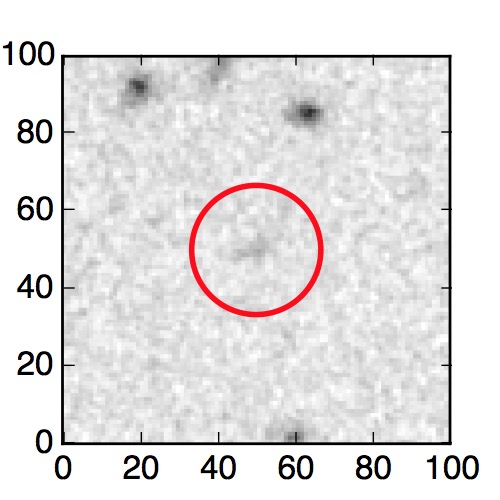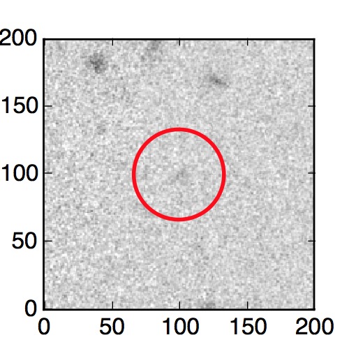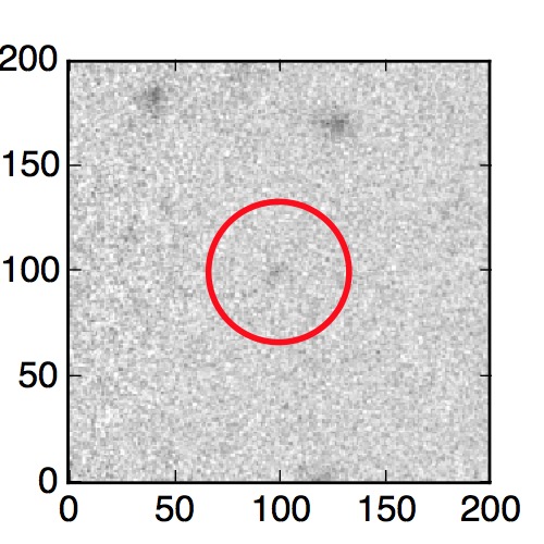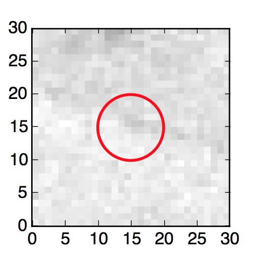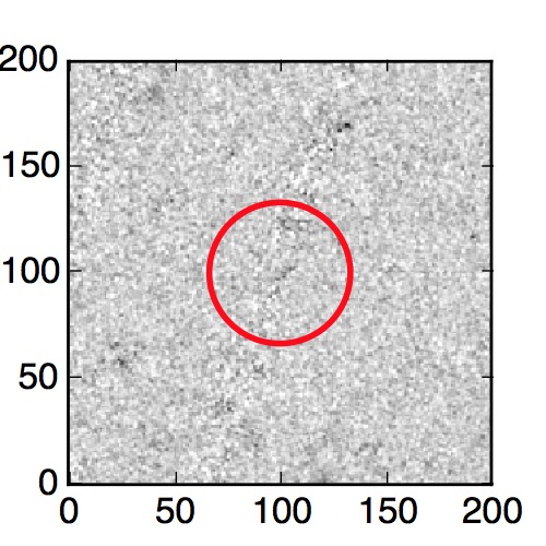 The red circle in the various panels is 1" in radius. The images are 6"x6".