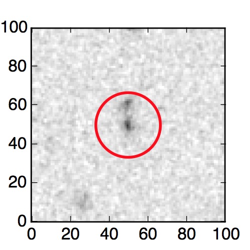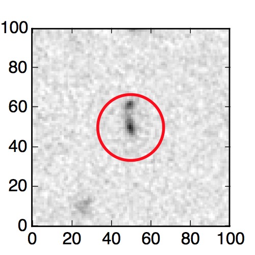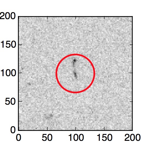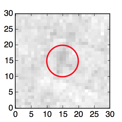 The red circle in the various panels is 1" in radius. The images are 6"x6".