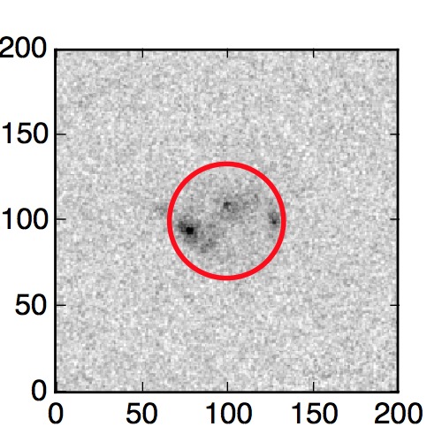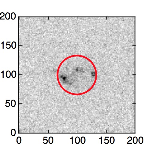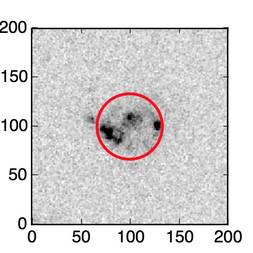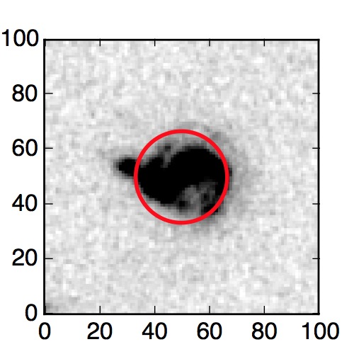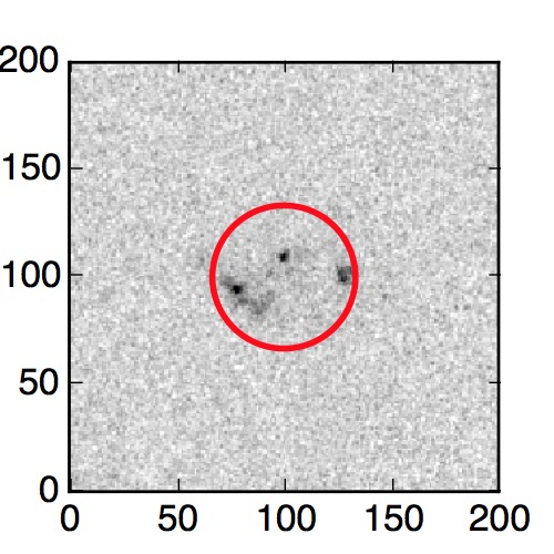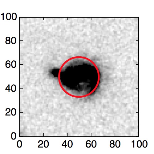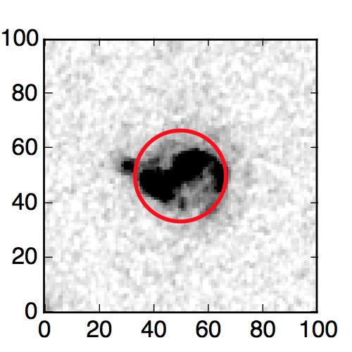 The red circle in the various panels is 1" in radius. The images are 6"x6".