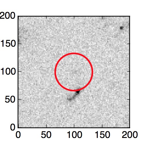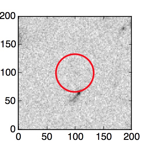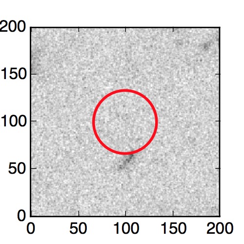 The red circle in the various panels is 1" in radius. The images are 6"x6".