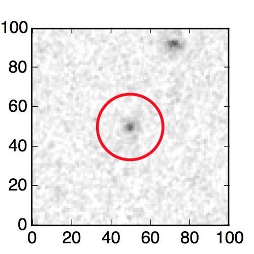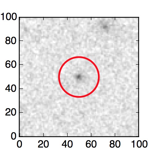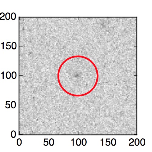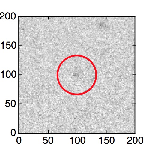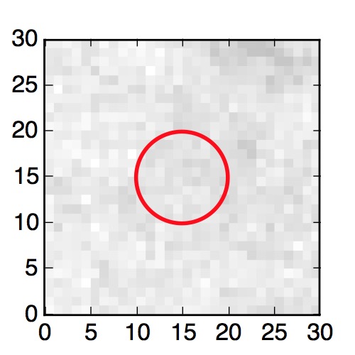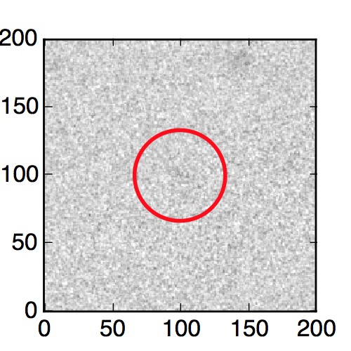 The red circle in the various panels is 1" in radius. The images are 6"x6".