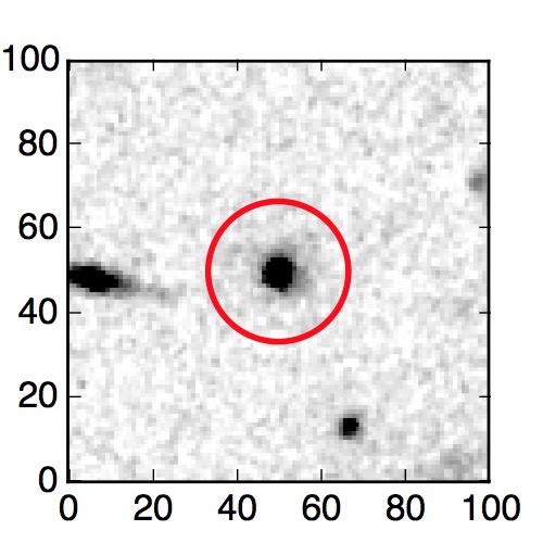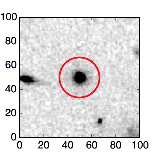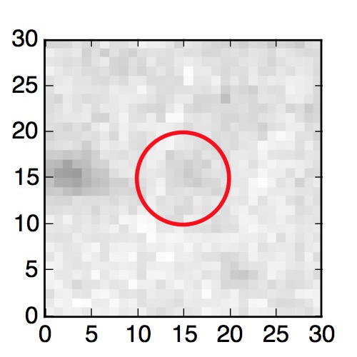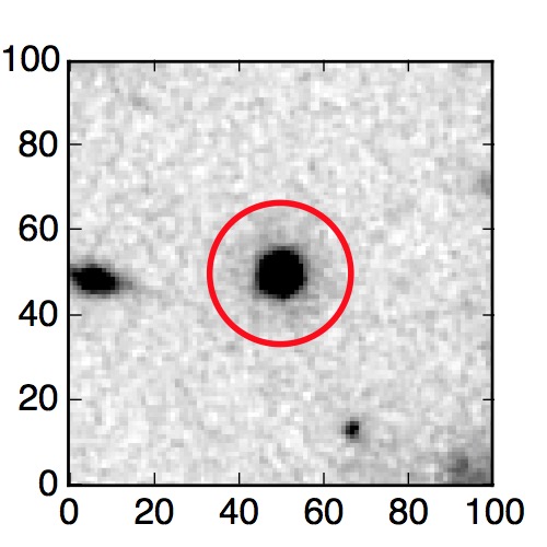 The red circle in the various panels is 1" in radius. The images are 6"x6".