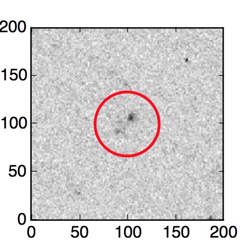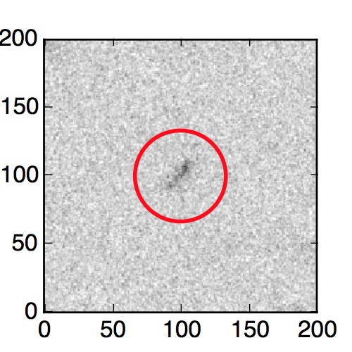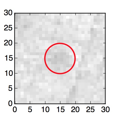 The red circle in the various panels is 1" in radius. The images are 6"x6".