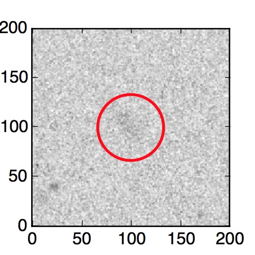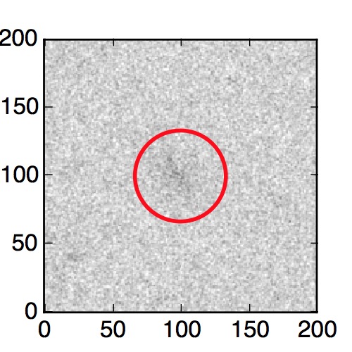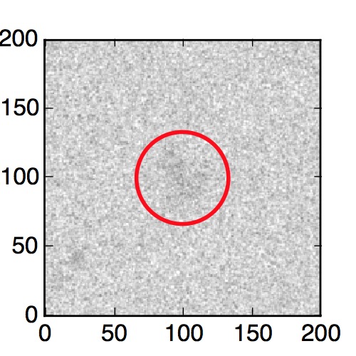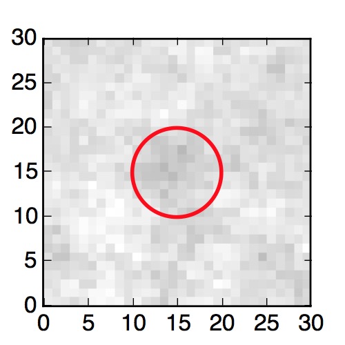 The red circle in the various panels is 1" in radius. The images are 6"x6".