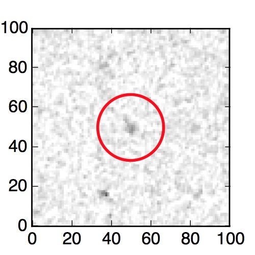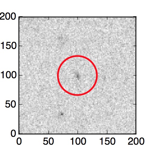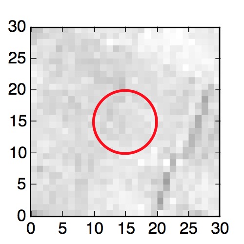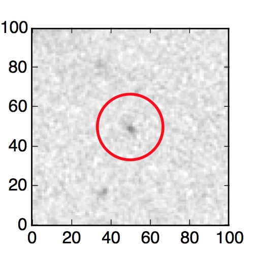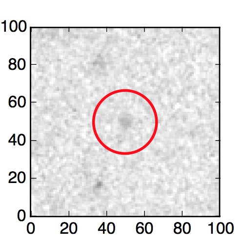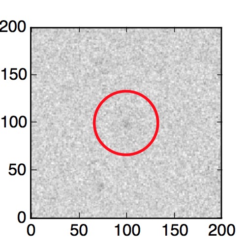 The red circle in the various panels is 1" in radius. The images are 6"x6".