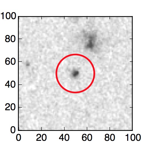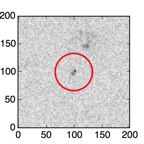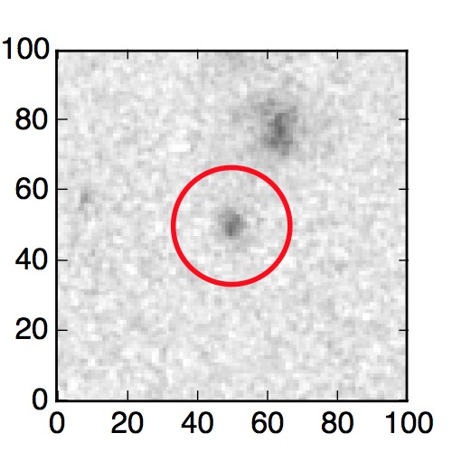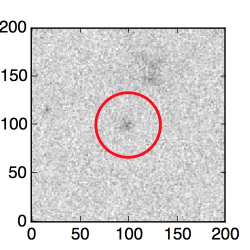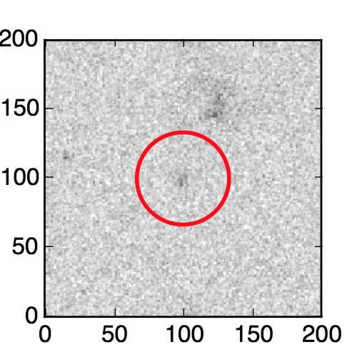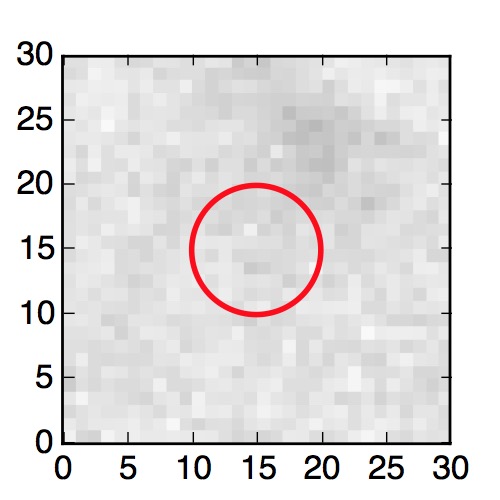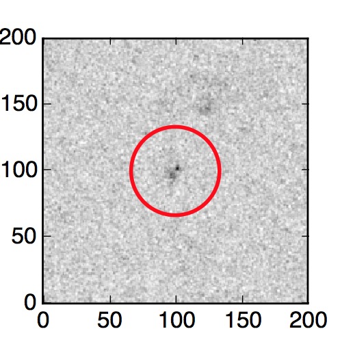 The red circle in the various panels is 1" in radius. The images are 6"x6".
